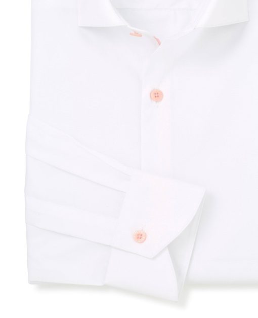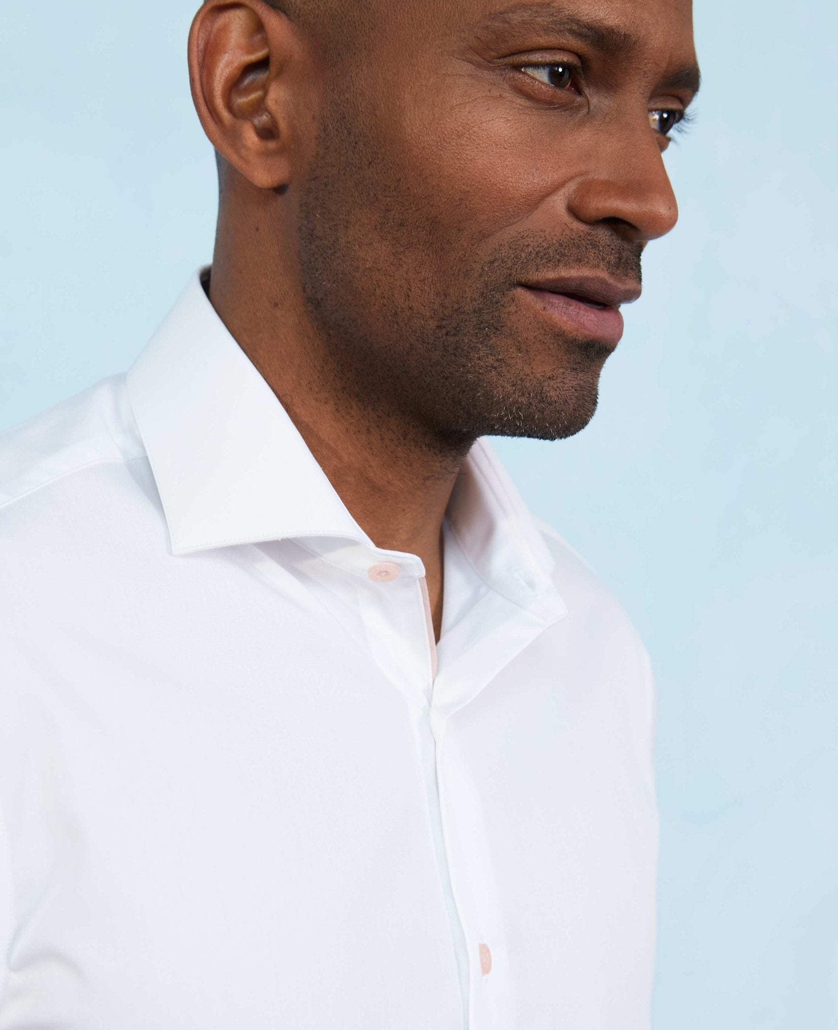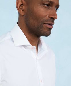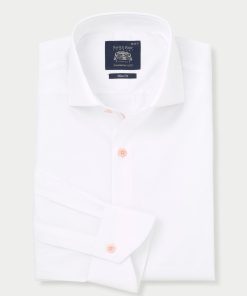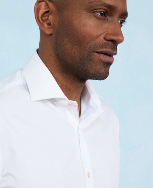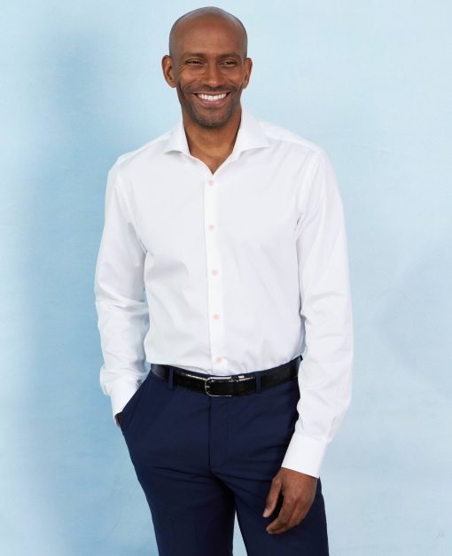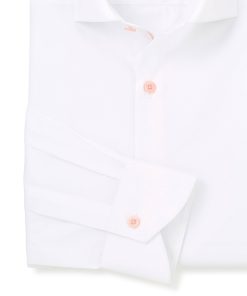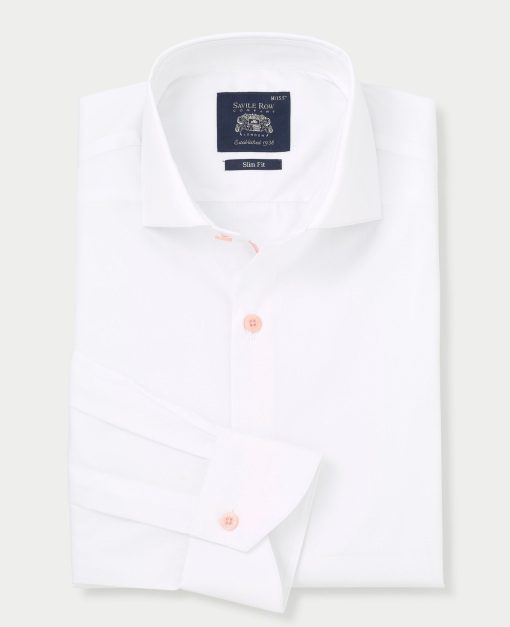 Introducing our latest men’s smart-casual shirt; the ultimate versatile piece for those who want to blend style with a relaxed yet refined look. Made from breathable cotton poplin, it offers a crisp, smooth finish and exceptional comfort. What truly sets it apart are the unique design details: the dusty pink piping and fine tape stitched down the inside placket add a subtle pop of colour, while the matching dusty pink buttons provide a fresh, modern touch. With its slim fit and single cuffs, this shirt strikes the perfect balance between smart and casual, making it ideal for both work and weekend wear.