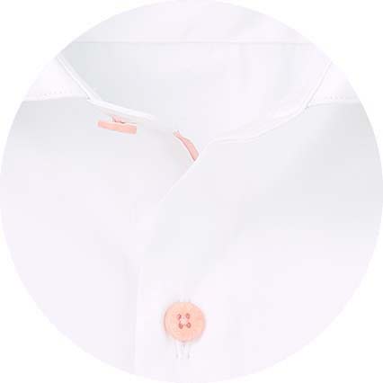- Dusty pink contrast buttons and fine tape stitched down inside placket