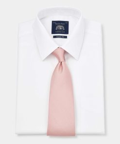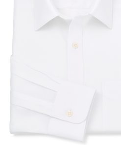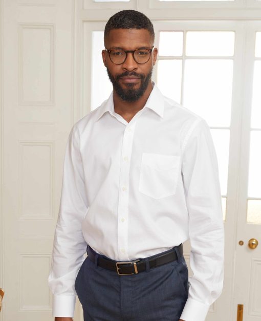 Crafted from cotton and finished with a curl-resistant collar and single cuffs, this is the perfect white work shirt. It’ll look great with a navy or grey suit, but will work just as well on its own with some formal trousers.