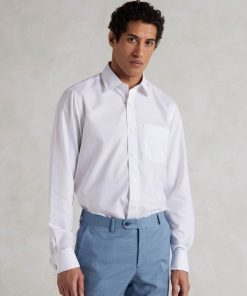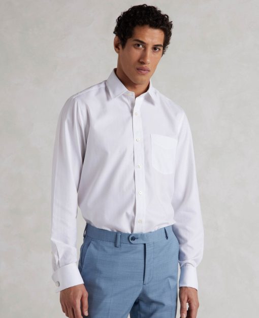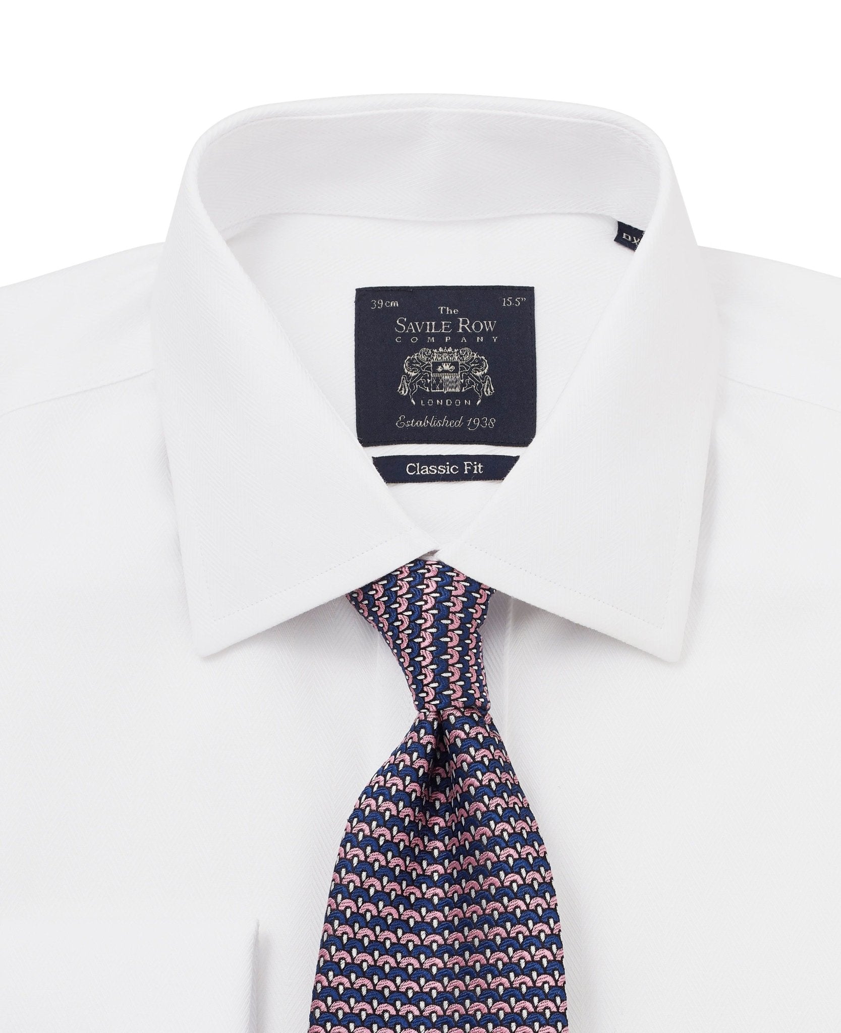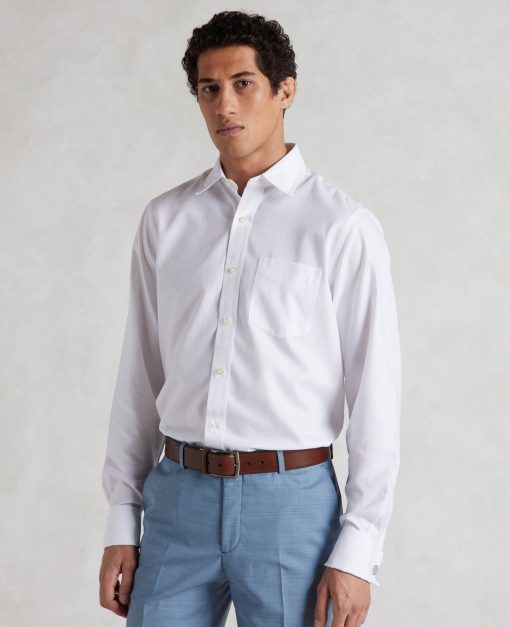 Perfect for business trips or after-work events, our white non-iron shirt can be washed, hung and worn instantly. Made from 100% cotton and accented with a herringbone pattern, it features a crisp Windsor collar, chest pocket and double cuffs.
