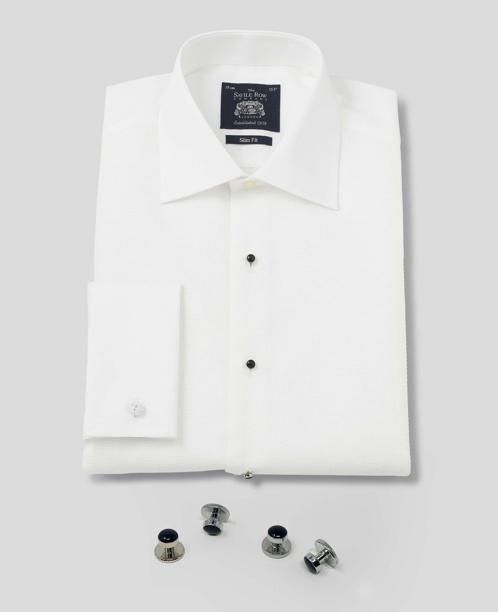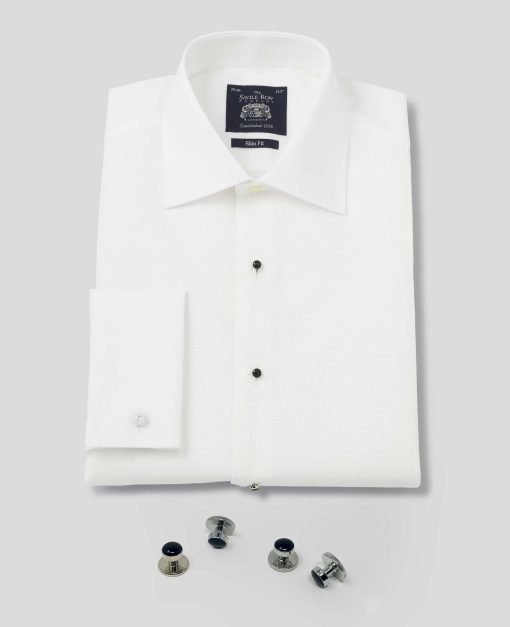 Savile Row Men’s White Marcella Bib Front Dinner Shirt & Dress Stud Set | Dinner
