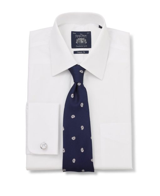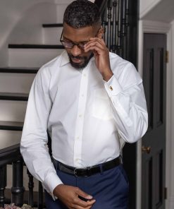 Our most popular men’s white shirt, made from pure cotton with an easy-iron finish and a generous classic cut shape. The perfect foundation piece for your formal ensembles, this timeless design comes with a curl-resistant collar and chest pocket for a functional finish.