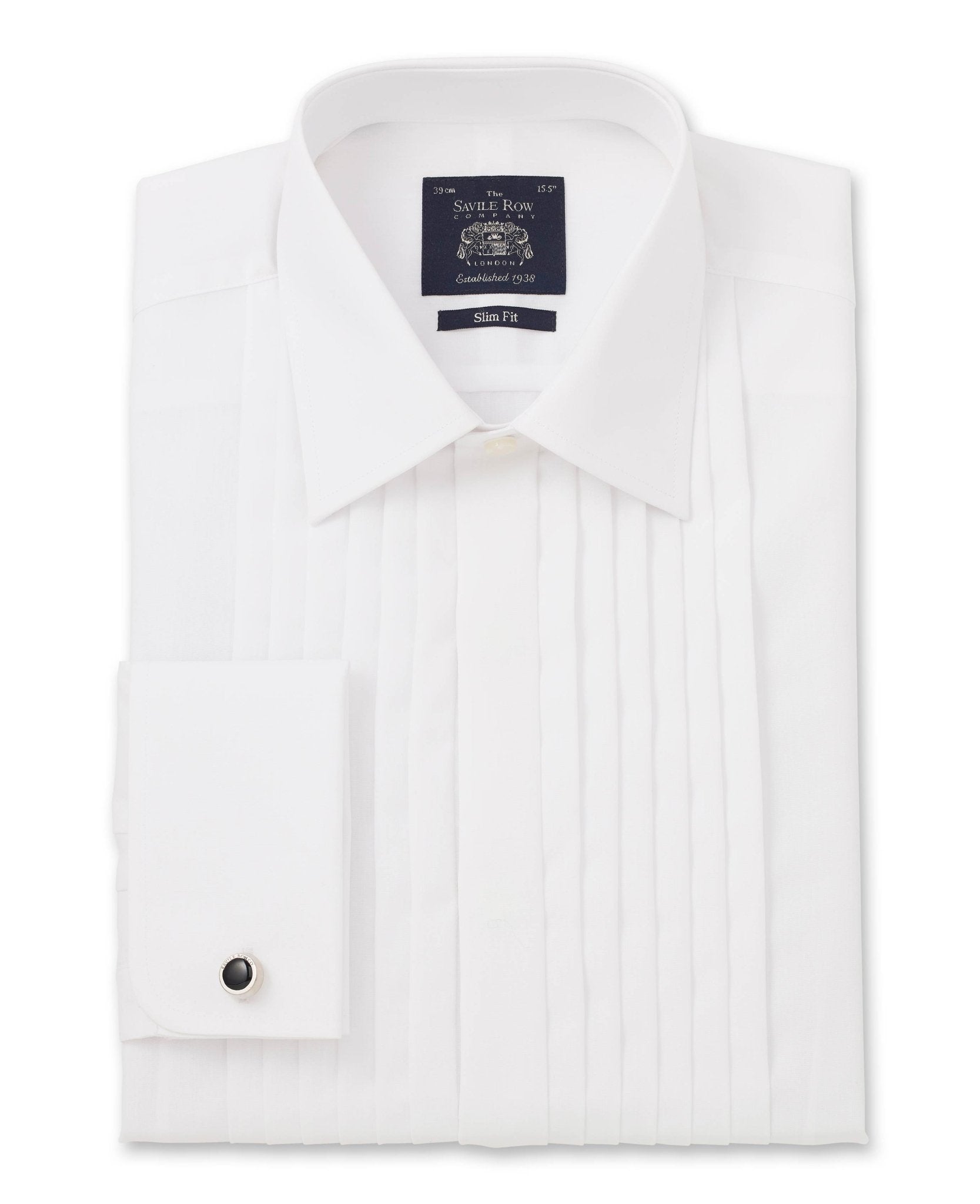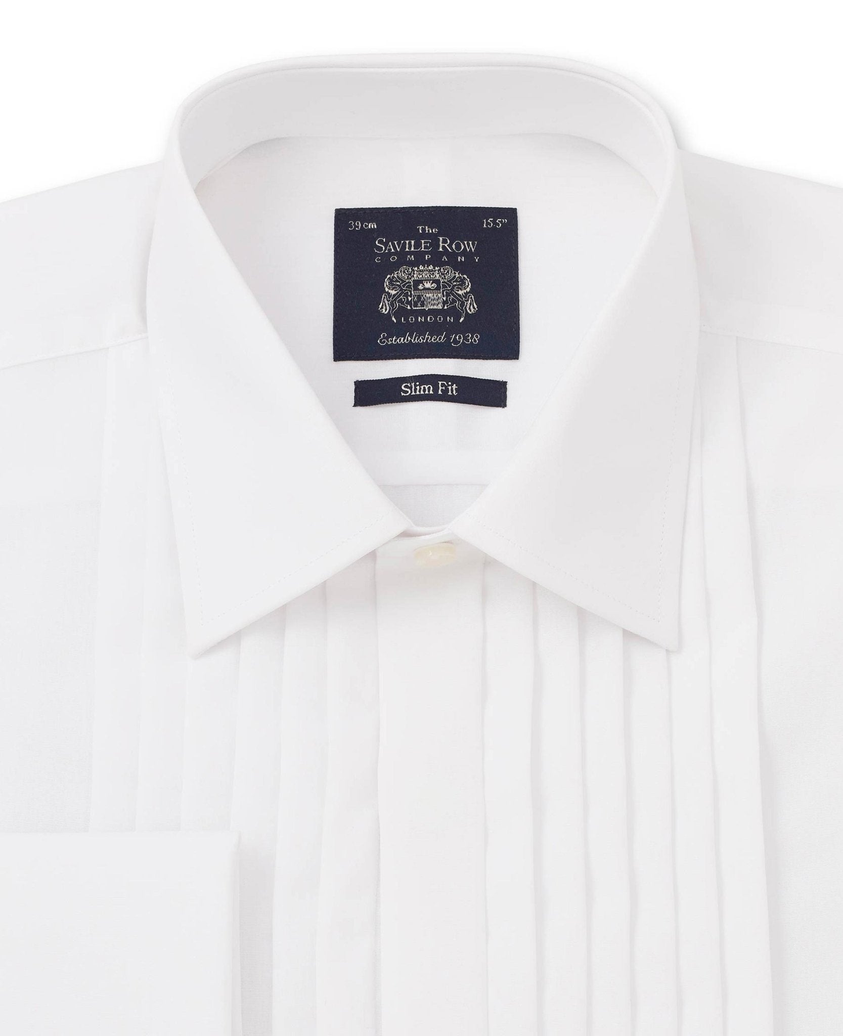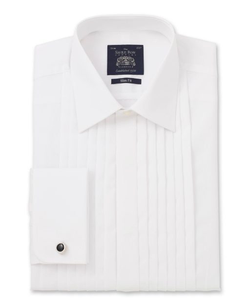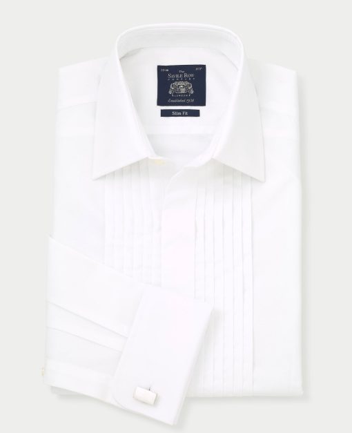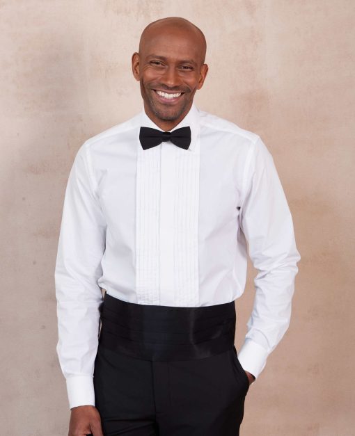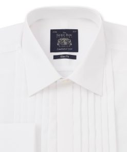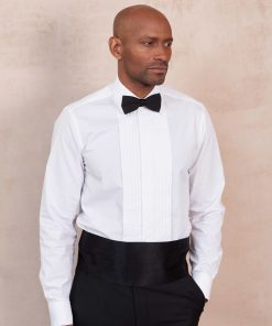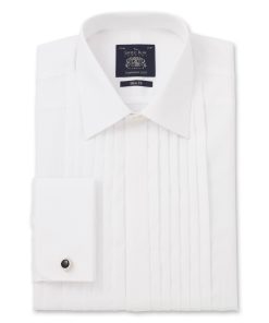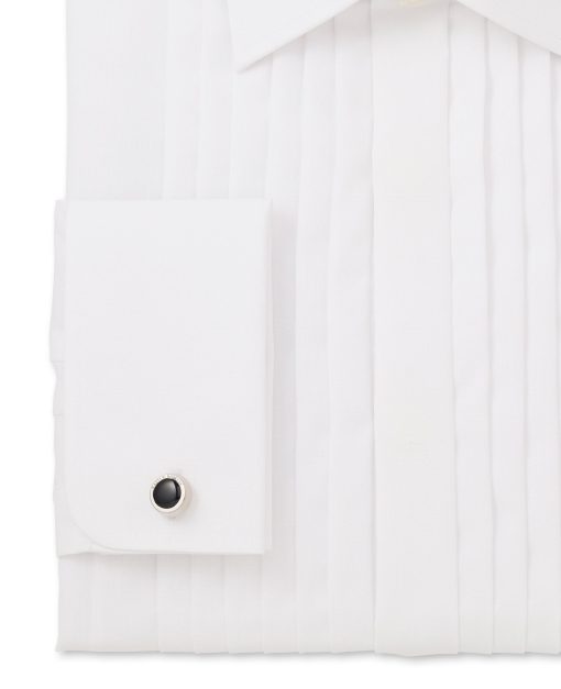 Black tie event? This evening shirt is just the ticket if you need to make a super-smart impression. The perfectly contoured Windsor collar will carry either a regular or bow tie while the pleated front adds detail to your formal look.