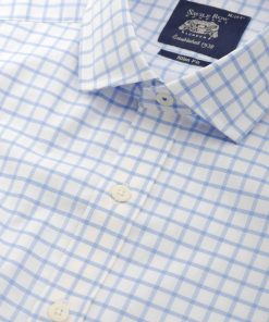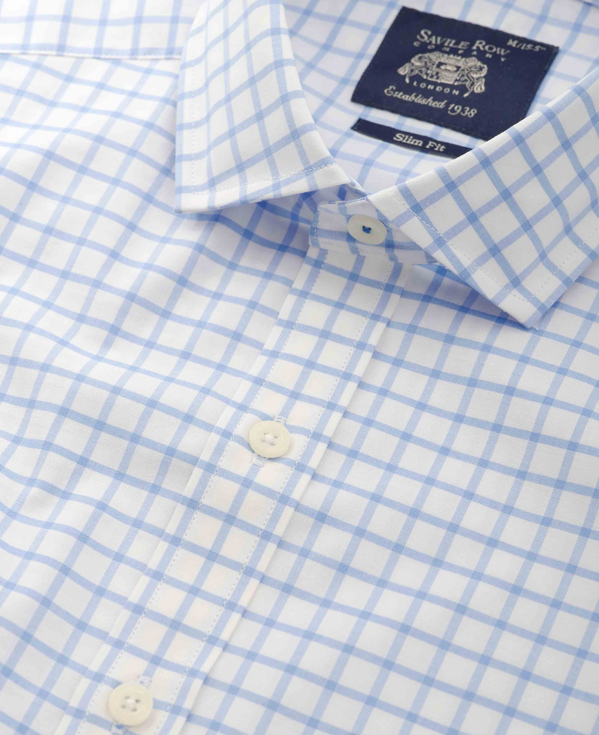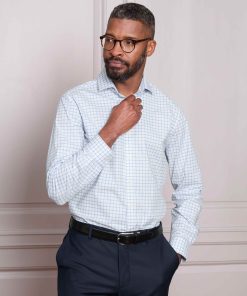 This men’s check smart-casual shirt brings together the best of both worlds: crisp enough to smarten up, relaxed enough to keep things easy. Made from breathable cotton with just a touch of stretch, it delivers all-day comfort and natural movement without losing its shape. The fabric feels smooth and cool against the skin, making it an ideal choice whether you’re dressing for the office or an off-duty occasion. Cut in a flattering slim fit, it’s gently tapered to suit all builds and slightly shorter in length, so it looks great both tucked in or worn loose. A small soft cutaway collar adds a refined edge, while the split yoke at the back ensures a better fit through the shoulders. Finished with subtle contrast blue thread on the neck and cuff buttons.