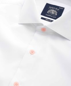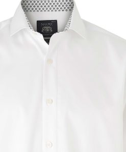 Savile Row Men’s White Dobby Weave Cotton Classic Fit Formal Shirt – Single Cuff | White