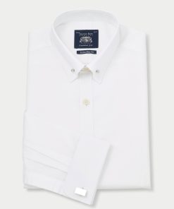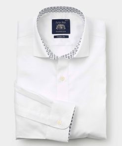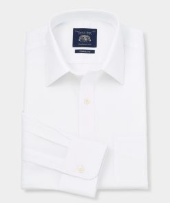 Savile Row Men’s White Cotton Twill Classic Fit Smart-casual Shirt – Single Cuff | White