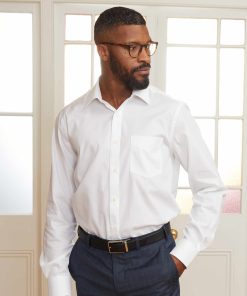 Savile Row Men’s White Herringbone Classic Fit Non-iron Formal Shirt – Double Cuff | White