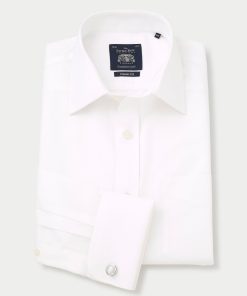 Savile Row Men’s White Marcella Bib Front Classic Fit Dress Formal Shirt – Double Cuff | White