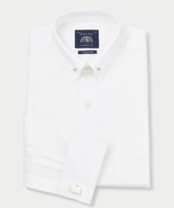 Savile Row Men’s White Button-down Classic Fit Oxford Shirt – Stripe Contrast Detail | White
